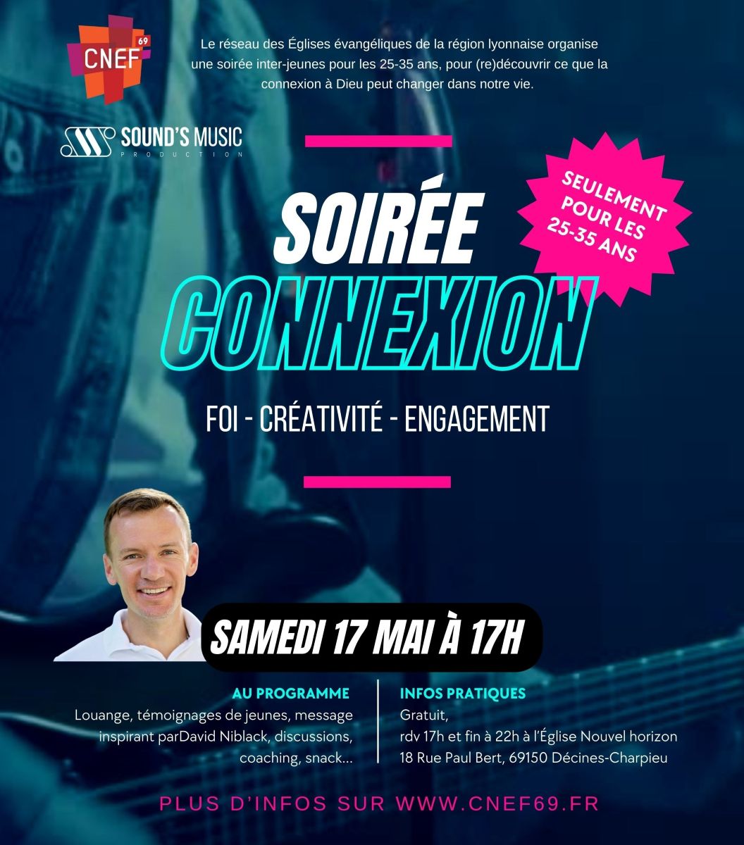 Le CNEF69 organise une soirée inter-jeunes destinée aux 25-35 ans, pour (re)découvrir ce que la connexion à Dieu peut changer dans nos vies.